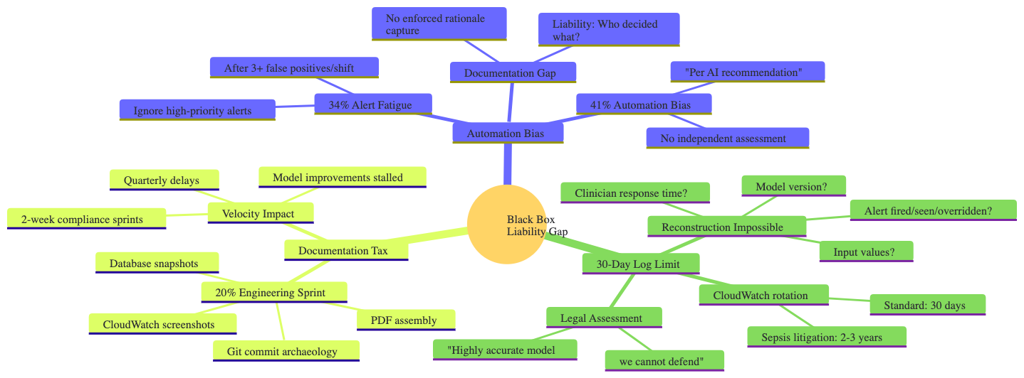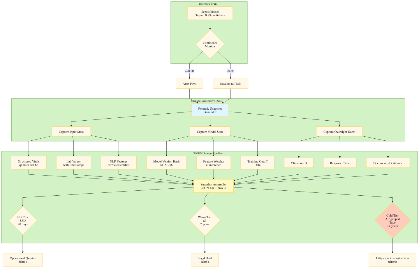 - Reconstruction Impossible: After 30 days, essential forensic data—including the exact model version, input values, and whether the alert was fired, seen, or overridden—was permanently lost.